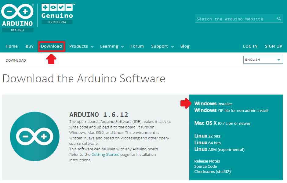 Lo primero que debes hacer es dirigirte a la página oficial de arduino.cc e ir a la sección de descargas “Download” y descargar la versión mas nueva, tal como se muestra en la imagen 0.1