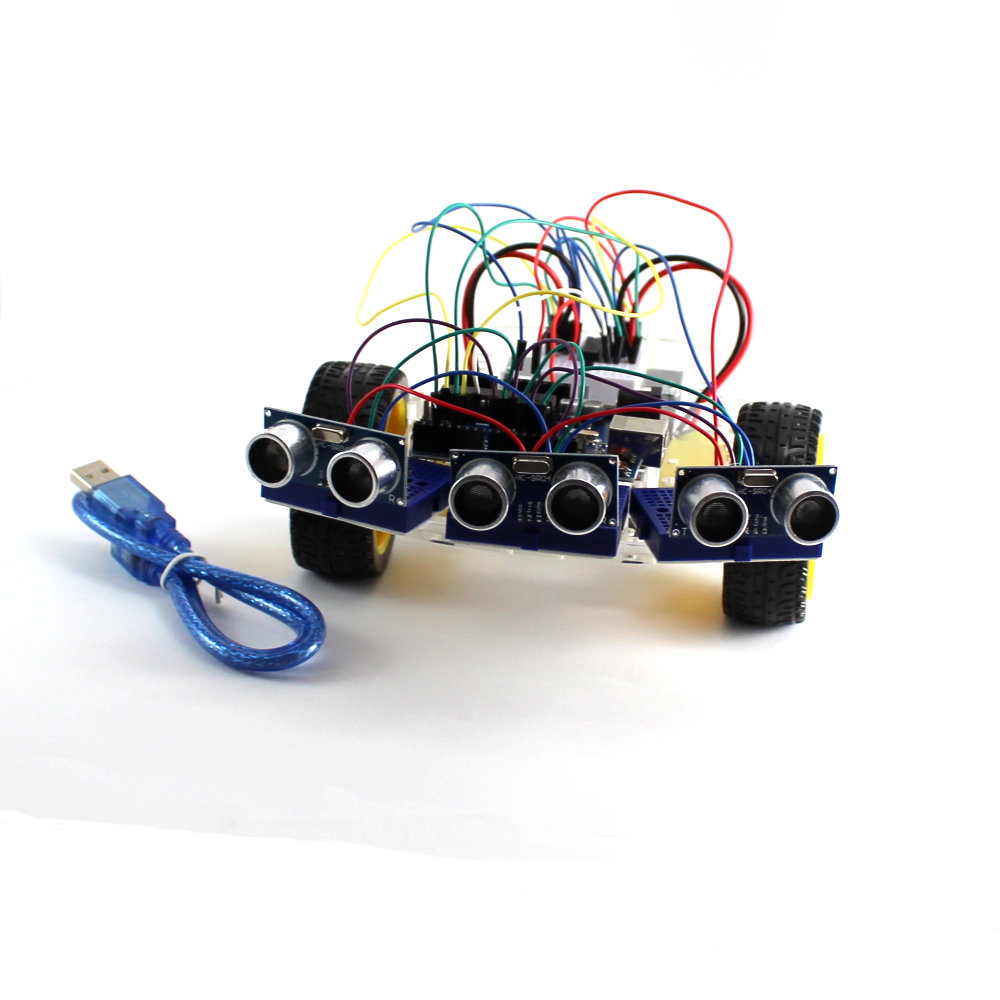 El kit robot evasor de obstáculos para Arduino + Tutorial + Código es uno de los proyectos que más entusiasman a estudiantes y aficionados de la robótica. Con la ayuda del tutorial y el código para programarlo podrás ponerlo en marcha en unos minutos. El robot es capaz de esquivar obstáculos a una distancia definida en el programa girando a la izquierda antes de colisionar.