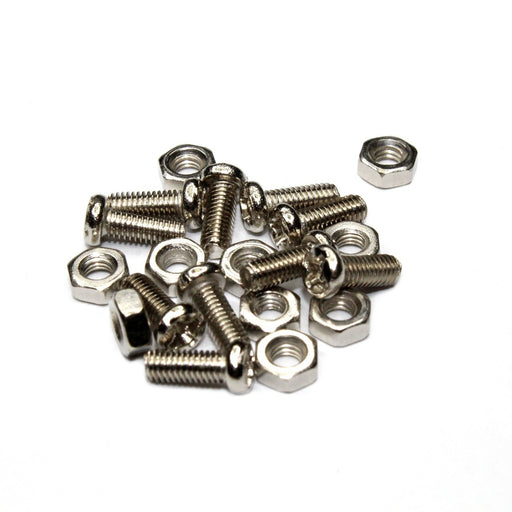 Descripción: Paquete con 10 tornillos M3 8 mm y 10 tuercas M3. Especificaciones tuerca: Rasca: M3 Material: Acero inoxidable. Color: Plateado Esp...
