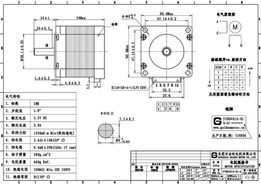 Descripción: Motor paso a paso Nema 23 57BYGH56 de tipo bipolar híbrido de alto torque tiene un ángulo de paso de 1.8 ° (200 pasos / revolución). C...