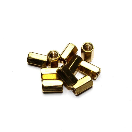 Descripción: Paquete con 10 Separadores de Latón M3 6 mm HH. Especificaciones: Rosca: M3 Longitud: 6 mm Material: Latón Color: dorado Tipo: HH Pes...