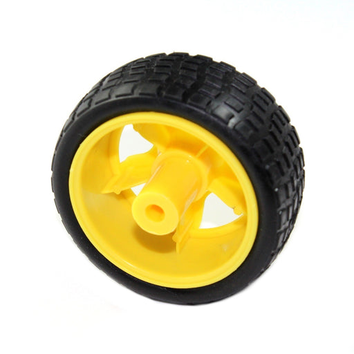 Ver todos los detallesDescripción: Rueda de plástico de 68 mm para motor con reductor. Especificaciones: Diámetro rueda: 68 mm Material: Plástico Color rueda: negro Col...