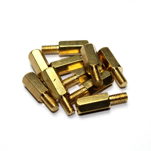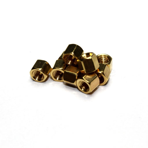 Descripción: Paquete con 10 Separadores de Láton M3 8 mm MH. Especificaciones: Rosca: M3 Longitud: 8 mm Longitud tornillo: 6 mm Material: Láton Co...