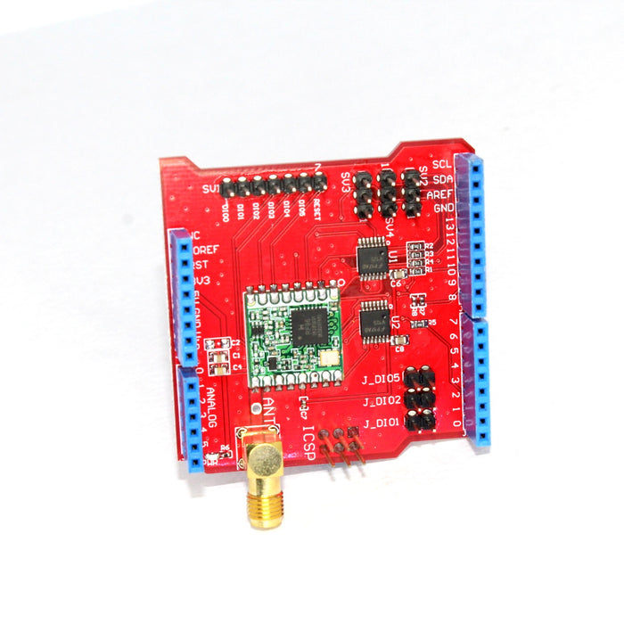 El LoRa Shield es un transceptor de largo alcance para Arduino, permite enviar datos y alcanzar rangos extremadamente largos a bajas tasas de datos. Tiene un ancho de espectro de comunicación a largas distancias e inmunidad a interferencias.